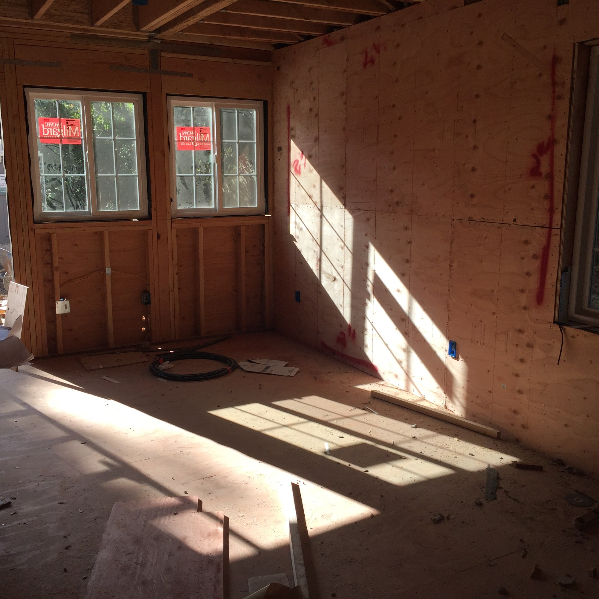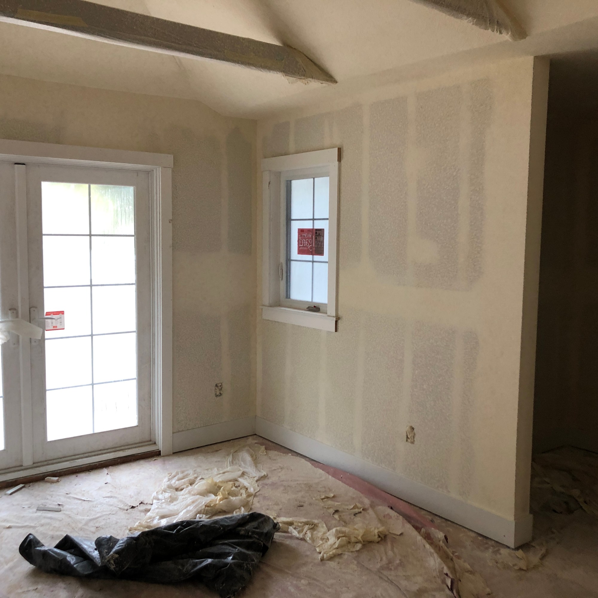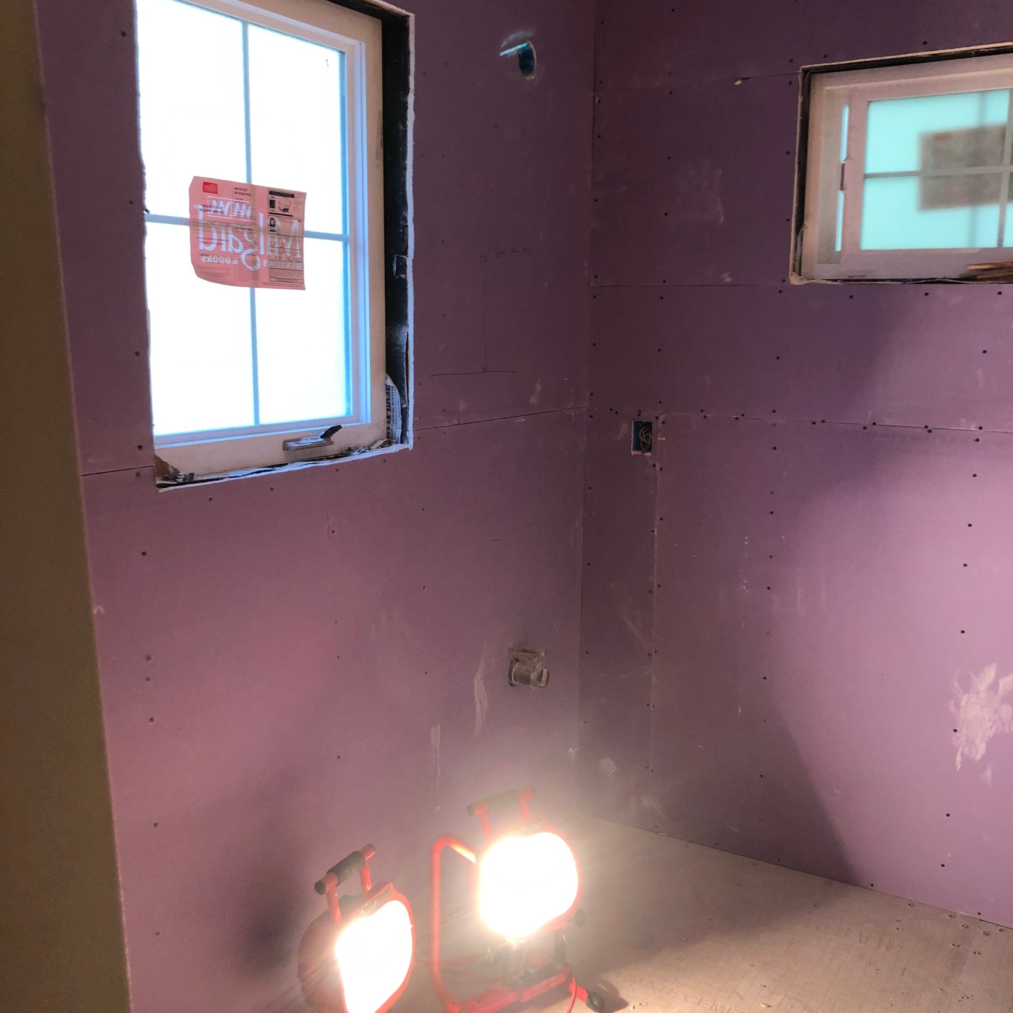 Of course when the actual walls went up we shifted a couple things a couple inches here and then low and behold… MANY doors and windows did not have room for the 4 inch trim. ANNOYING.